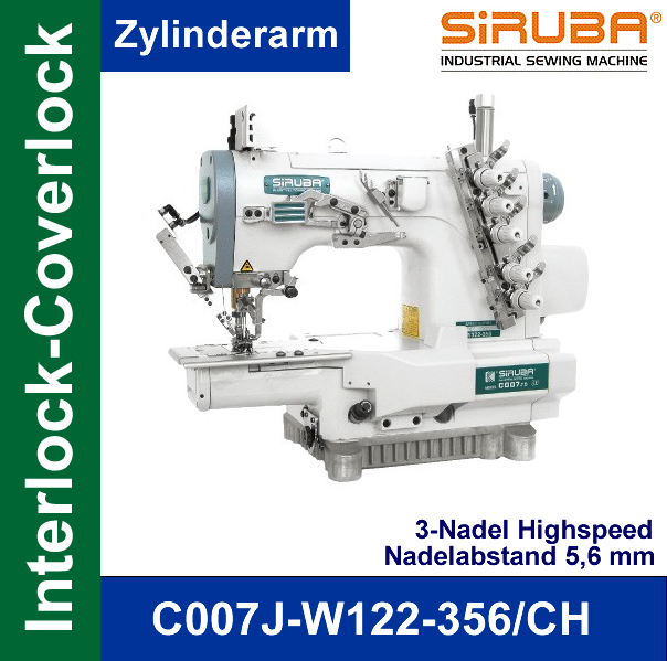 Siruba C007J-W122-356/CH (Zylinderarm) 3-Nadel oben/unten Überdecknahtmaschine-Komplett