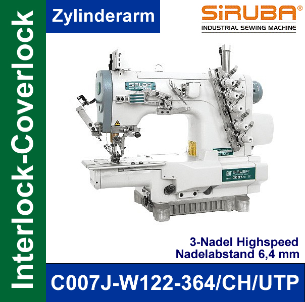 Siruba C007J-W122-364/CH/UTP (Zylinderarm) 3-Nadel oben/unten Überdecknahtmaschine-Komplett