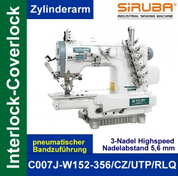 C007J-W152-356/CZ/UTP/RLQ kpl. – Siruba (Zylinderarm) 3-Nadel oben/unten Überdecknahtmaschine - Komplett