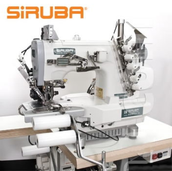 C007J-W152-356/CZ/UTP/RLQ kpl. – Плоскошовная 3-игольная машина с цилиндрической платформой Siruba с устройством для изготовления пояса с резинкой - комплект