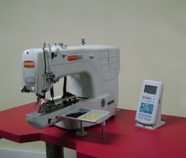 Siruba electronic bar tacking machine for light and medium fabrics, standard equipped with clamp 20x4,5 mm, max. bar tack length 17x3 mm, stitch length 0,1-10,0 mm, 3 000 s.p.m., original settings of 41 bar tacking patterns - vertical, horizontal, half-round, round. Possibility of modification of sewing patterns with the help of built-in LCD control panel. Modern design, intuitive build-in LCD control panel with direct, fluent speed sewing adjustment, advanced thread trimming system, thread breaking detector, led light.