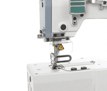 Машина оснащена кнопкой переключения регулировки длины стежка. Централизованная смазка, возможны разные виды стежка. Максимальная длина стежка 1 мм, ширина зигзага до 3,7 мм, высота подъема лапки 7 мм, максимальная скорость шитья 3.500 ст/мин. Машина в комплекте с эргономичным промышленным столом и фрикционным двигателем.