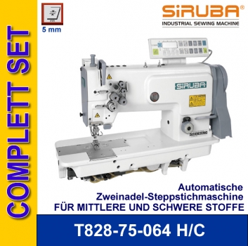 T828-75-064 H/C + A/K + C-30 kpl. – SIRUBA Zweinadel-Steppstichmaschine - Komplett