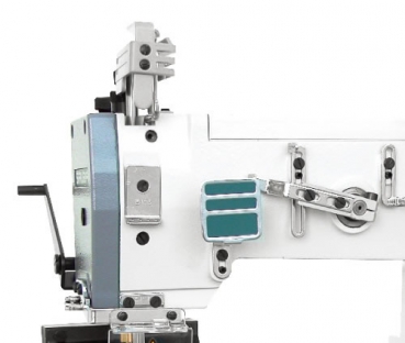 4-игольная машина цепного стежка, расстояние между крайними иглами 6,4 мм, нижний зубчатый транспортер, максимальная скорость шитья 4.200 ст/мин, централизовання смазка. Для этой машины рекомендуем рубильники UMA TK110 - TK116. Машина в комплекте с эргономичным промышленным столом и фрикционным двигателем.