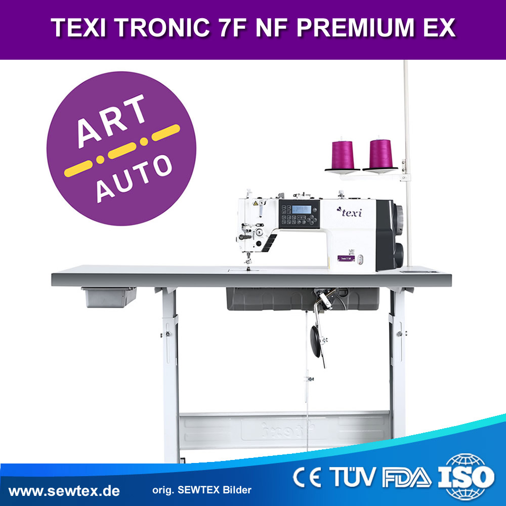 Suchst du eine automatische Nähmaschine mit Nadeltransport für leichte und mittlere Stoffe, Bekleidung & Dekorativnähte? Die TEXI TRONIC 7F NF PREMIUM EX ist die leise, schnelle & moderne Wahl für präzise Produktion – mit ART AUTO & Stepper-Technologie!